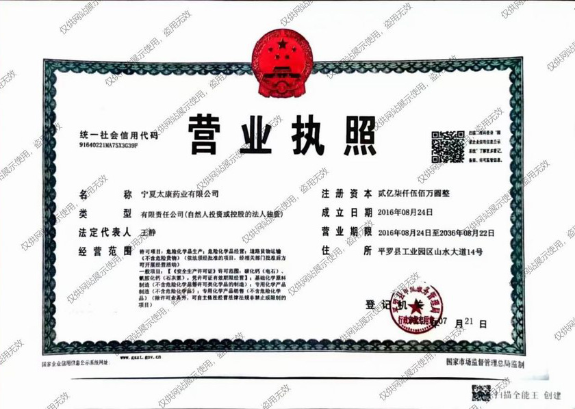 Copyright(C)2023, Ningxia Taikang Pharmaceutical Co., Ltd. All Rights Reserved. Supported by  ChemNet ChinaChemNet Toocle?